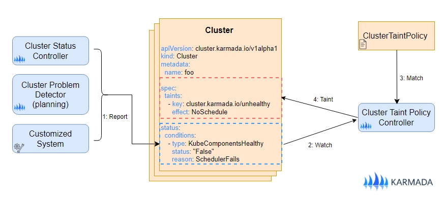 Cluster conditions can be determined not only by the Karmada system but also by any third-party system. This offers administrators